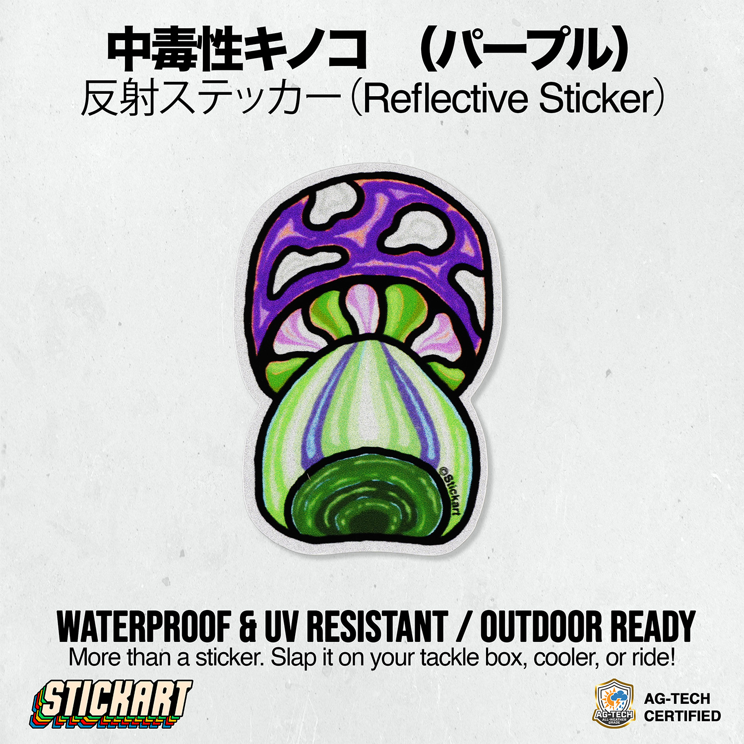 「それ何!?ヤバい!」と目を背けられない中毒性。PCやスケボーに貼って「劇物」としての存在感を放つもよし、スマホに貼って情報の渦にトリップするもよし。遊び心と毒が交差する、唯一無二のトリップ感をお楽しみください。
