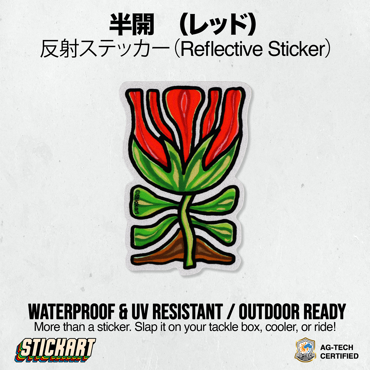 「咲ききらない」という選択。 その曖昧で危うい佇まいは、あなたの愛車やPCを「現場」へと変貌させます。給油口に添えてガソリンの香りと共に楽しむもよし、ヘルメットやタックルボックスに貼って、アートを持ち出すもよし。日常に「警告と彩り」を添える、唯一無二の存在感をお楽しみください。