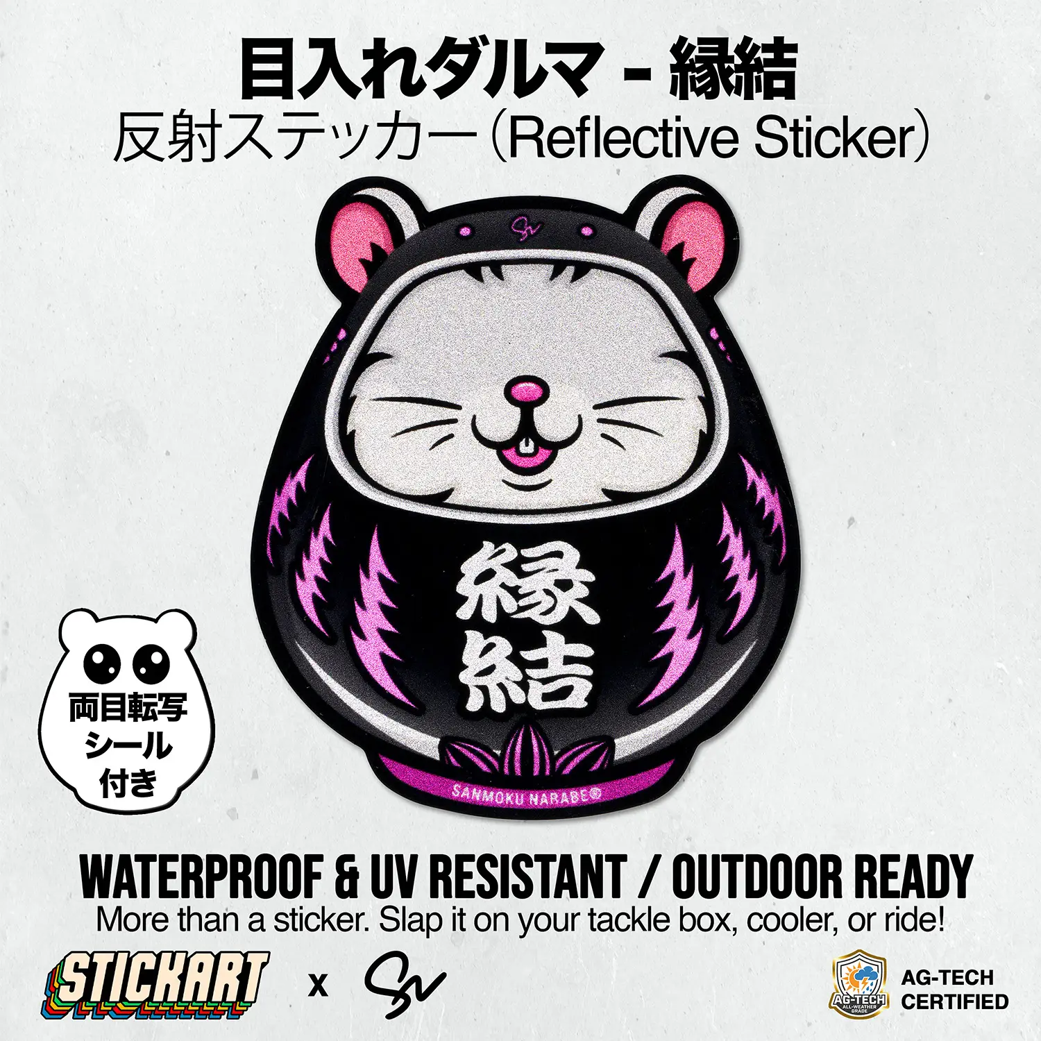 日本の伝統的な「だるまの目入れ(点睛)」を、誰もが楽しめる参加型ミッションへと昇華させること。そして、その儀式を担う「目入れダルマ反射ステッカー」を通じて、日常の安全対策に遊び心と願いの力を融合させる、全く新しい文化を創造します。
