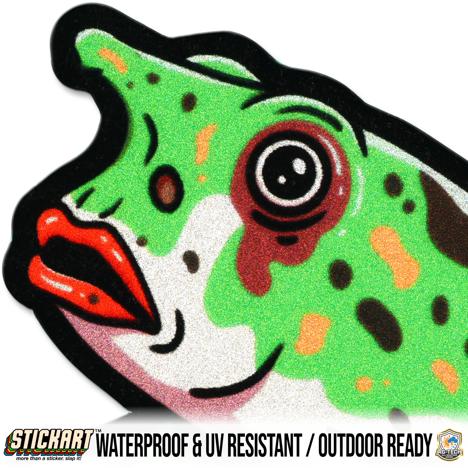 「それ何!?」と突っ込まれること間違いなし。 タックルボックスに貼って釣りのテンション(と笑い)を上げるもよし、クーラーボックスやPC、車に貼って独特の個性を爆発させるもよし。遊び心と狂気が交差する、唯一無二の存在感をお楽しみください。