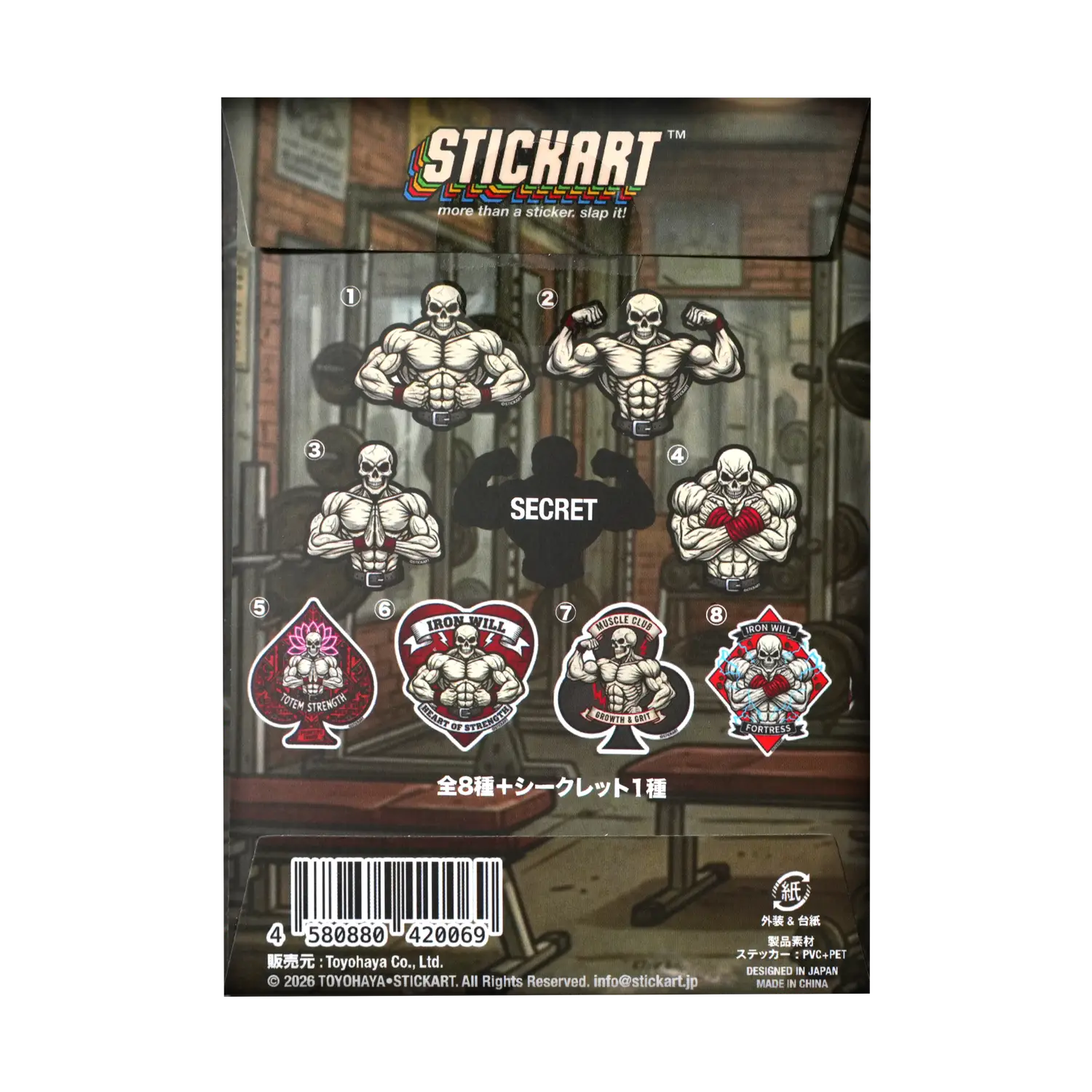 • デザインラインナップ: 圧巻のマッスルポーズを決めるスカル4種と、トランプ(スペード・ハート・クラブ・ダイヤ)をモチーフにしたタフなエンブレム4種、そして謎に包まれたシークレットをご用意。